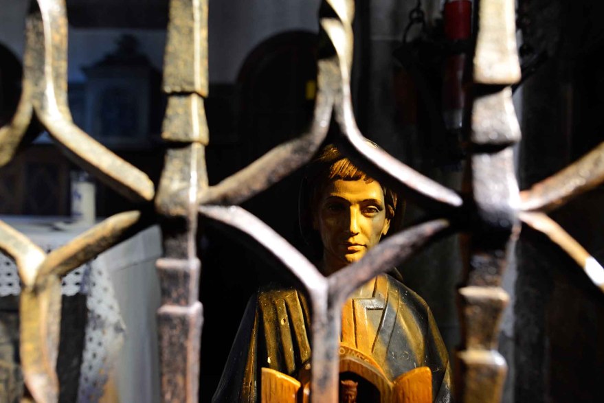 En el Ripollés, cerca del Berguedá, es interesante realizar un pequeño paseo de montaña que lleva desde el pueblo medieval de Gombrèn hasta el santuario de la Mare de Déu de Montgrony. Es un paseo de un par de horas largas, ida y vuelta, algo duro en su parte final, que sube desde los 900 metros en los que se encuentra el pueblo hasta los más de 1.300 del santuario. En cualquier caso, vale mucho la pena. Poco transitado (al santuario se puede llegar en coche y en lo alto hay un restaurante-hotel de precios competitivos y menú recomendable), durante el camino en otoño es fácil encontrar gente (muchas, parejas, aunque pocas) yendo a recoger setas. A la vuelta, ya por la tarde y con algo de suerte, nosotros nos topamos con un par de vacas en el camino. Una de ellas, nada timorata aunque sí prudente, comía tranquila mientras le hacíamos algunas fotos. La leyenda del Conde Arnau, nacido y muerto en estas tierras, caballero medieval destacado cuya leyenda dice que fue condenado a cavalcar para la eternidad, se asocia al descubrimiento del Castillo de Mataplana a mediados de los años ochenta.
