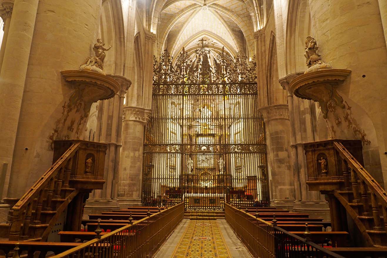 Y también, al lado, destaca la Plaza Mayor, donde se encuentra el edificio del Ayuntamiento, el Convento de San Pedro pero, sobre todo, la Catedral. Nombre completo: Catedral de Santa María y San Julián. La fachada ya nos dejó con la boca abierta. Espectacular. Leemos que fue el primer templo gótico de Castilla. Su aspecto actual, pese a diferir del original, la convierte en uno de los edificios religiosos más impresionantes del país. El aspecto exterior, de estilo neogótico, data de comienzos del siglo XX después que el inicial fuera del s. XVI y que, entre medio, fuera sustituída en el siglo XVIII.