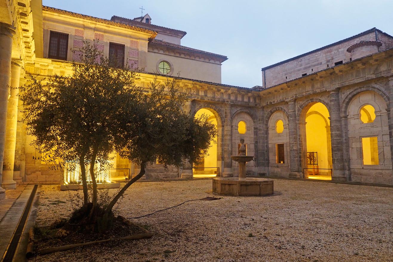 Por dentro, al entrar -requiere ticket para realizar la visita- ya se intuye por lo visto apenas en el pequeño espacio que se divisisa desde la taquilla, que merecerá la pena. Y así es. De estilo originalmente gótico, en su interior mezcla varios estilos posteriores. Pese a que por su fachada pudiera parecere relativamente pequeño, engaña. El interior es profundo y lleno de detalles y salas. El claustro, rehabilitado recientemente ofrece unas vistas al Puente de San Pablo preciosas. En general, podemos decir que no nos lo esperábamos y que a la postre y pese al tiempo que no acompañó demasiado, nos fuimos con buenas sensaciones de lo que es y representa la ciudad de Cuenca.
