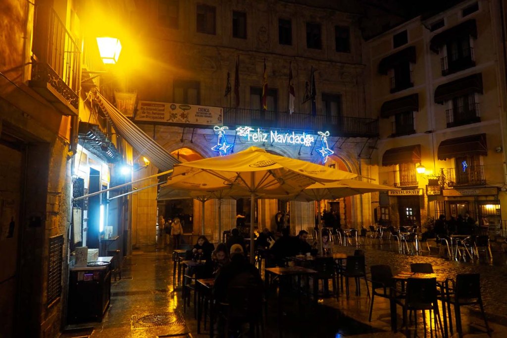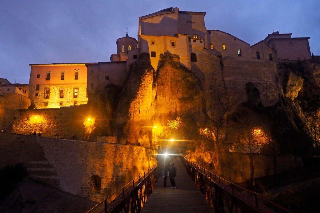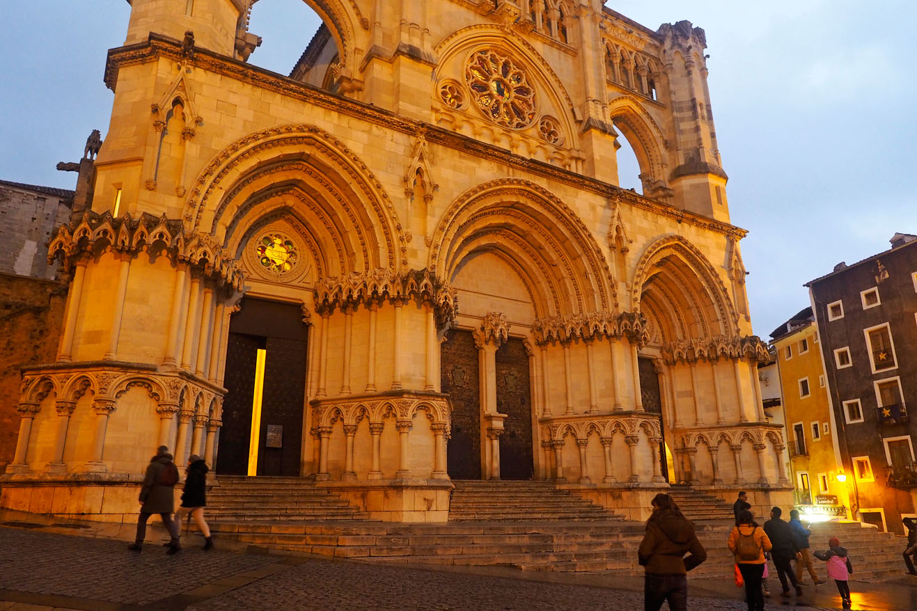 Llegamos en un día frío, gris; caía algo de lluvia pero era soportable. Aún así, bajo esas condiciones atmosféricas, pocas o ninguna ciudad luce. Cuenca, en un inicio no fue una excepción pese a estar catalogada como Patromonio de la Humanidad por la Unesco desde mediados de los años noventa del siglo pasado por su “magnífica armonía entre naturaleza y paisaje urbano”. Y razones no les faltaron por entonces para otorgarle dicha distinción. A nosotros solo nos hicieron falta unas horas para que fuera anocheciendo y las luces de farolas, ventanas y comercios iluminaran unas calles que hasta ese momento nos habían parecido algo desapacibles.
