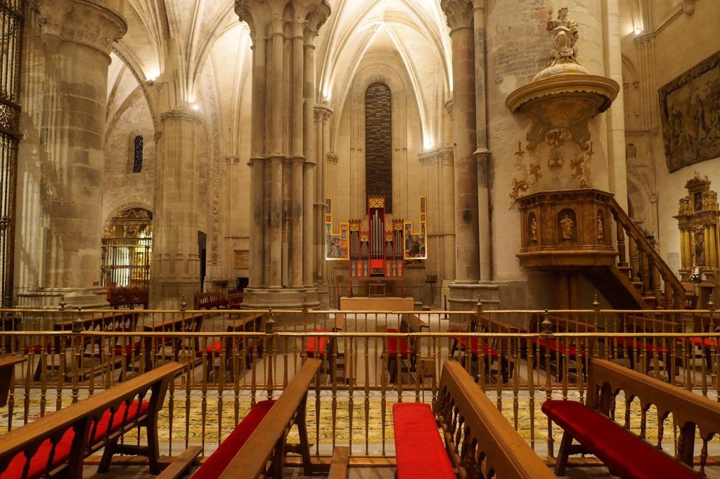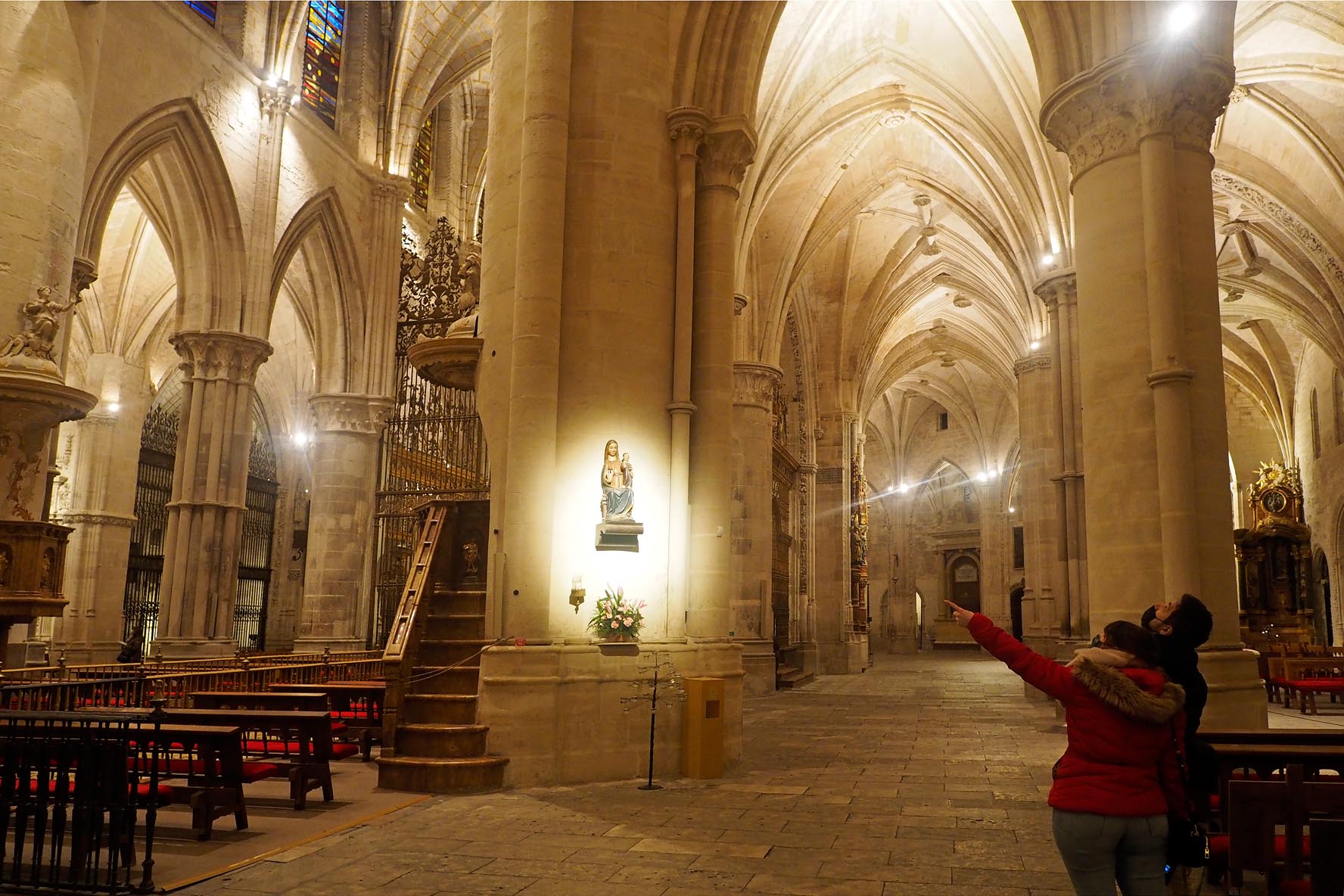Y también, al lado, destaca la Plaza Mayor, donde se encuentra el edificio del Ayuntamiento, el Convento de San Pedro pero, sobre todo, la Catedral. Nombre completo: Catedral de Santa María y San Julián. La fachada ya nos dejó con la boca abierta. Espectacular. Leemos que fue el primer templo gótico de Castilla. Su aspecto actual, pese a diferir del original, la convierte en uno de los edificios religiosos más impresionantes del país. El aspecto exterior, de estilo neogótico, data de comienzos del siglo XX después que el inicial fuera del s. XVI y que, entre medio, fuera sustituída en el siglo XVIII.