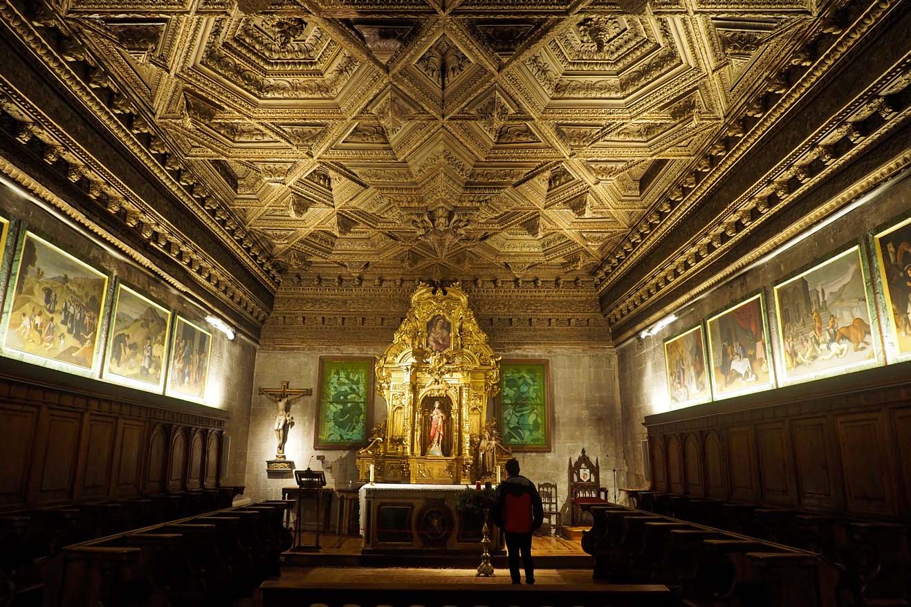 Por dentro, al entrar -requiere ticket para realizar la visita- ya se intuye por lo visto apenas en el pequeño espacio que se divisisa desde la taquilla, que merecerá la pena. Y así es. De estilo originalmente gótico, en su interior mezcla varios estilos posteriores. Pese a que por su fachada pudiera parecere relativamente pequeño, engaña. El interior es profundo y lleno de detalles y salas. El claustro, rehabilitado recientemente ofrece unas vistas al Puente de San Pablo preciosas. En general, podemos decir que no nos lo esperábamos y que a la postre y pese al tiempo que no acompañó demasiado, nos fuimos con buenas sensaciones de lo que es y representa la ciudad de Cuenca.