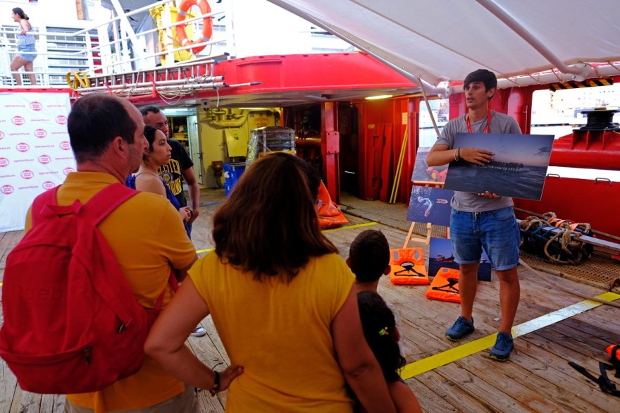 En nuestro caso, pudimos saber algo más sobre ellos a través de la jornada de puertas abiertas celebrada en Barcelona y que permitía conocer por dentro las particularidades del tercer barco que consiguen en régimen de cesión -por gracia de un multimillonario argentino y que operaba en las plataformas petrolíferas del Mar del Norte- y que lleva por nombre Open Arms Uno. Se suma al Astral y a una segunda embarcación, anteriormente un remolcador. La previsión, según indicaron, es que salga al mar a finales de este julio (2022) después de un largo periplo que lo ha retenido en el puerto bajo la exigencia -sospechosa- de ingentes permisos y requisitos que ha retardado su navegación probablemente más de lo esperado y, seguramente, habitual. //
