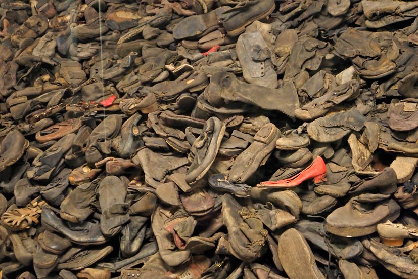 En otro de los pabellones hay amontondas, tras unos cristales protectores, decenas de maletas de los prisioneros, cazos, gafas, prótesis de diversa índole… Y una de las cosas que más impacto genera: montañas de zapatos de hombres y mujeres, y de niños y niñas. La experiencia del campo, sin duda, es dura y afecta.
