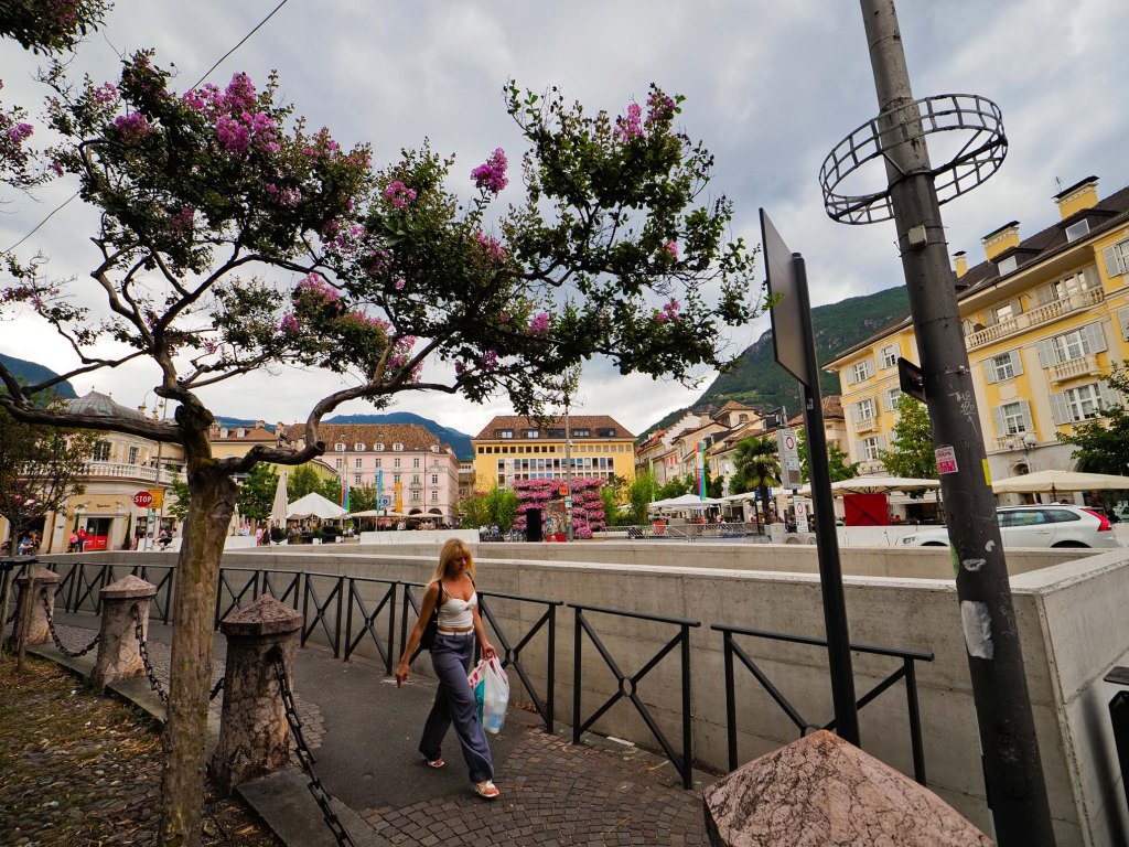 Ésta, por cierto, Plaza de las Hierbas, se señala a su vez como uno de los legados más evidentes del espíritu centroeuropeo presente en buena parte de sus calles, pórticos y plazas. El mercado, de frutas y verduras, activo desde hace más de 800 años, se remonta hasta 1295 y es hoy uno de los grandes reclamos turísticos de Bolzano. Damos fe de ello y coincidimos en dicho parecer. Otro de los lugares, central, punto neurálgico, es la Piazza Werther, llena de cafés y restaurantes y lugar ideal para sentarse, darse un descanso y disfrutar de la peculiar y magnífica ubicación de esta ciudad. Por cierto, aunque nosotros no lo vimos (por las fechas) pero parece contar con un espectacular y muy conocido y popular Mercado de Navidad. Seguro que por entonces la estampa es de postal.