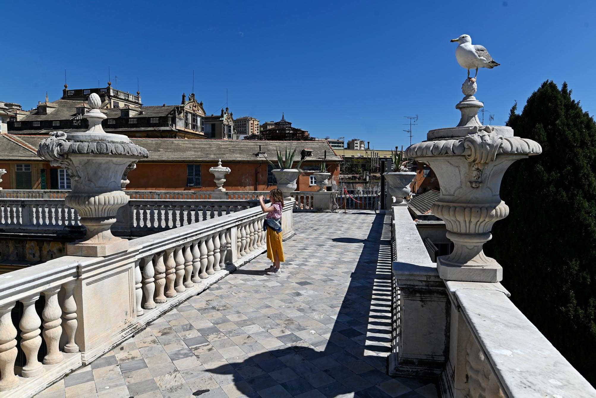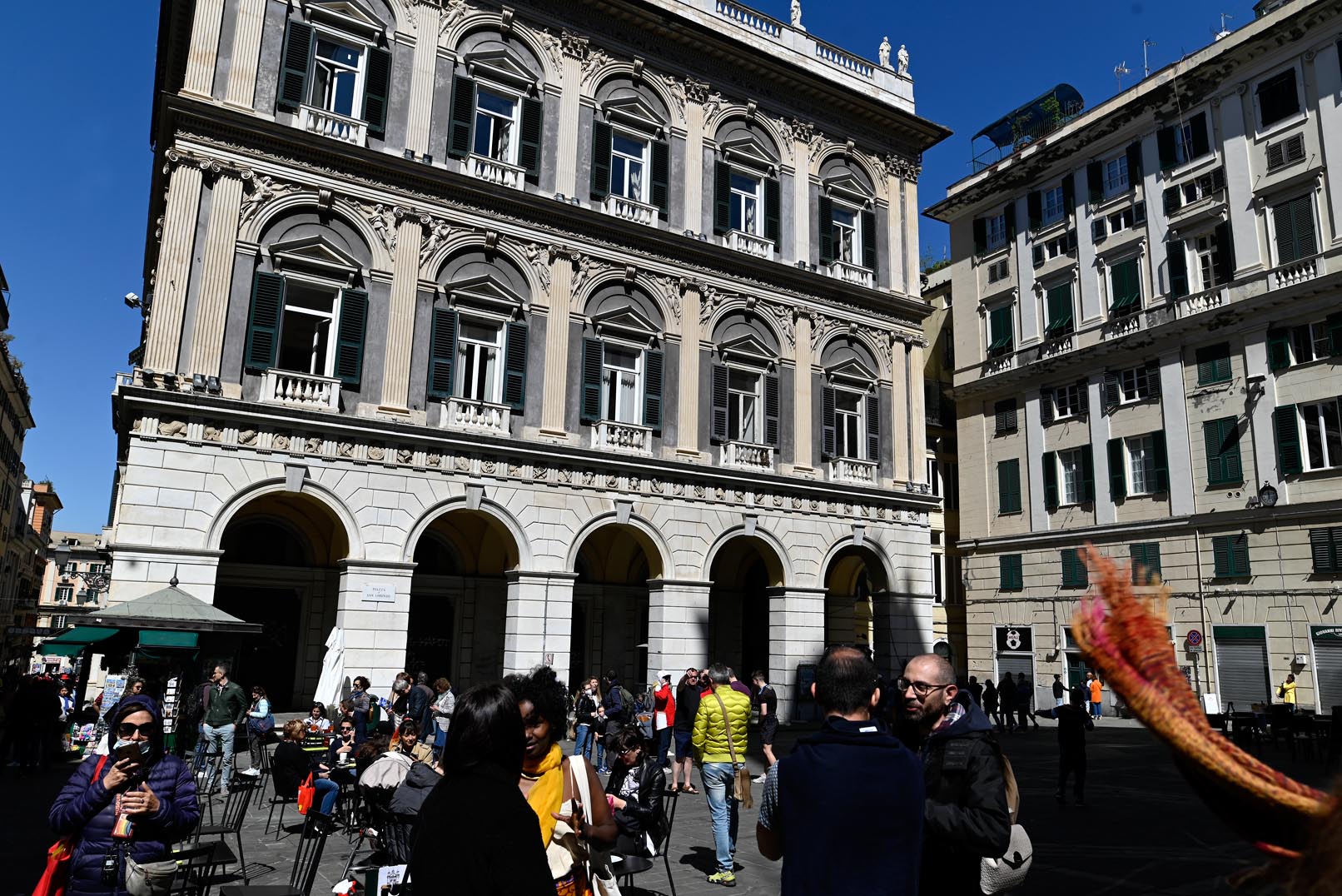 Es una ciudad de 600.000 habitantes, de enorme historia, gran puerto -uno de los más destacados del Mediterráneo- y muchos lugares por ver y descubrir. Puede que no tenga la fama, el prestigio o el atractivo de muchos otros lugares de Italia ante los que probablemente ensombrezca, aún así sí tiene peso e interés como para encuadrarse dentro de un itinerario por toda esta parte del país transalpino. Nos gustó -cierto, que es decadente- el centro histórico, mezcla de estilos de muchos periodos distintos superpuestos con más o menos tino y que conservan partes medievales con otras posteriores, renacentistas, barrocas, románticas… Calles de trazados sorprendentes que esconden pequeñs plazas e iglesias reducidas pero todavía muy dignas. Gente cenando, ruido, vida… Al final, el puerto: zona lúdica y recreativa, alma de esta ciudad mercader y comerciante. Y además, el Palazzo Reale, cedido por el rey Víctor Manuel III al estado italiano en 1919 y anteriormente propiedad de la familia Savoya. Destacada también toda la zona de los palazzos, una cuarentena del más de centenar hoy todavía en pie declarados Patrimonio de la Humanidad por la UNESCO en 2006. O algo más lejos, un arco de triunfo en homenaje a los caídos durante la Primera Guerra Mundial. Espacio concurrido y, según leemos, entre los preferidos de sus ciudadanos, como papel central ostenta la Piazza Ferrari, que recuerda a un duque que donó una gran cantididad a la ciudad en las postrimerías del XIX para ampliar el puerto. El repaso no podía acabar sin hacer breve mención a la casa recreada en su lugar original y fiel a la de entonces donde Colón vivió unos años con su padre con el claro convencimiento que no quería seguir sus pasos como tintorero.